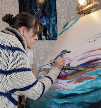 Acrylpouring kombiniert mit abstrakter Malerei.