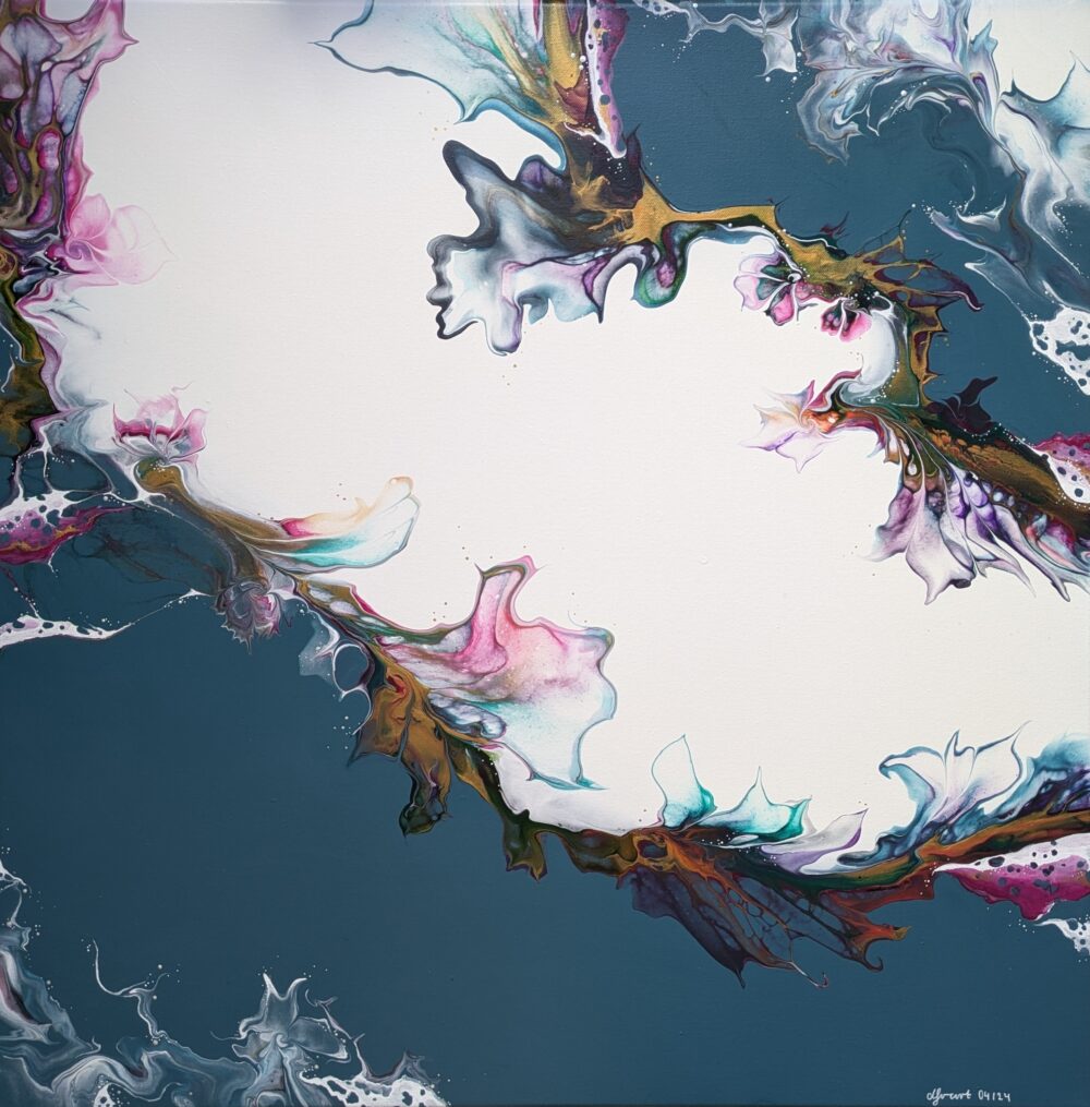 Acrylpouring kombiniert mit abstrakter Malerei.