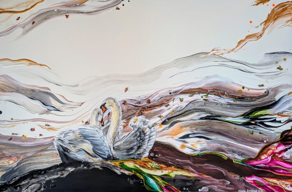 Technik: Acrylpouring mit abstrakter und gegenständlicher Malerei