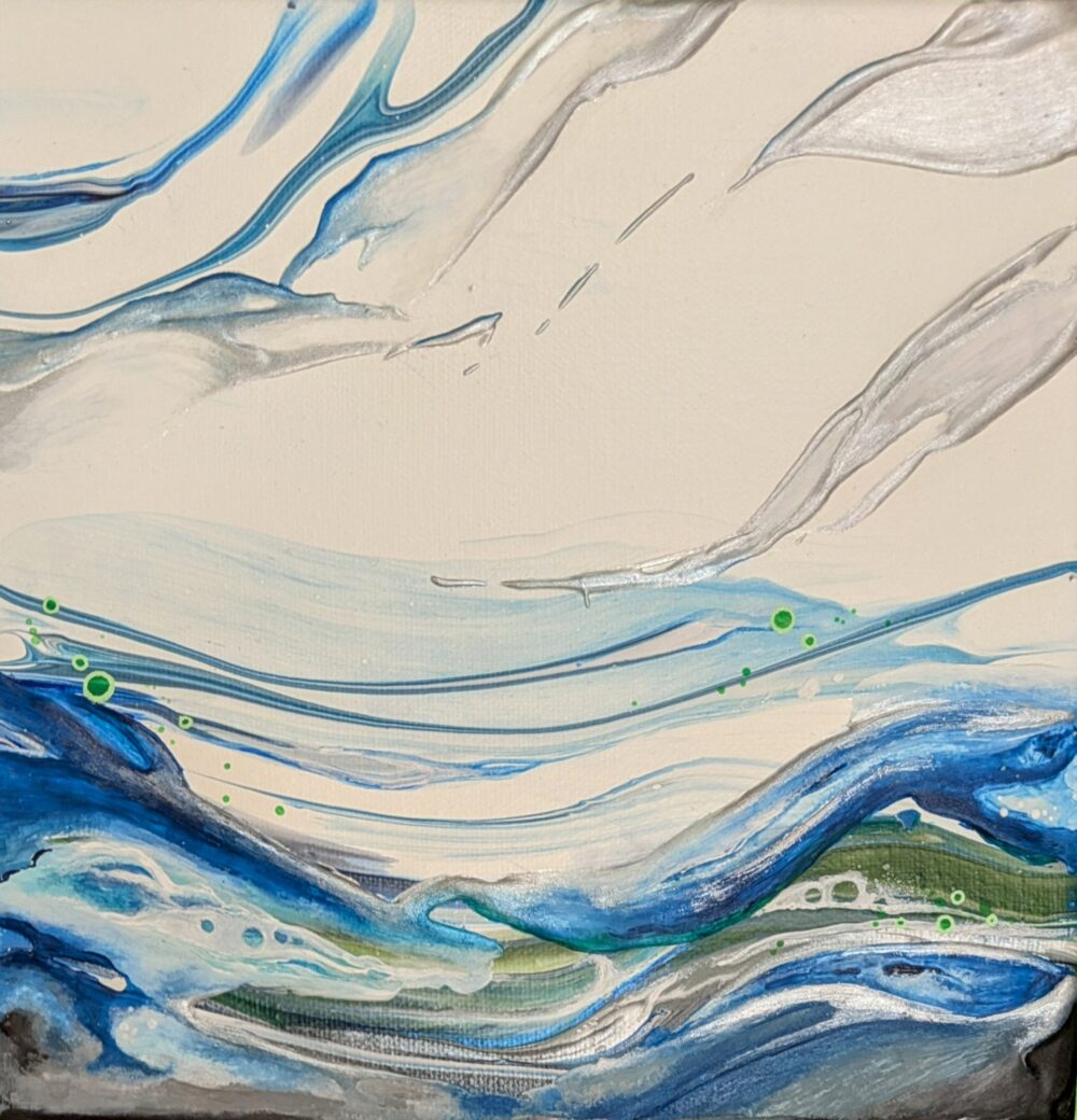 Acrylpouring kombiniert mit abstrakter Malerei.