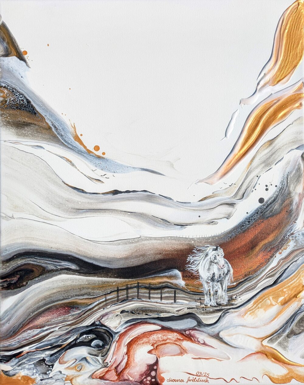 Acrylpouring kombiniert mit abstrakter und gegenständlicher Malerei